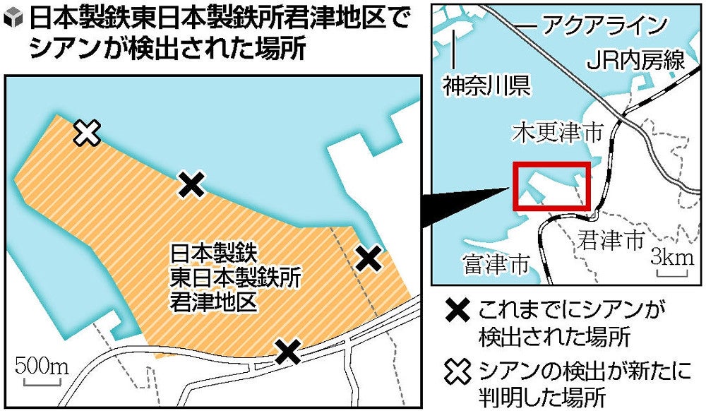 「日本製鉄東日本製鉄所君津地区」では、ことし6月から先月にかけて東京湾に面した排水口などから基準を超える毒物のシアンが相次いで検出され、県の立ち入り検査を受けています。
