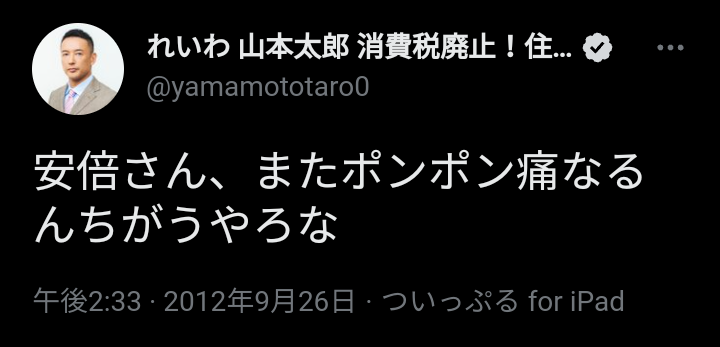 山本太郎「安倍さん、またポンポン痛なるんちがうやろな」