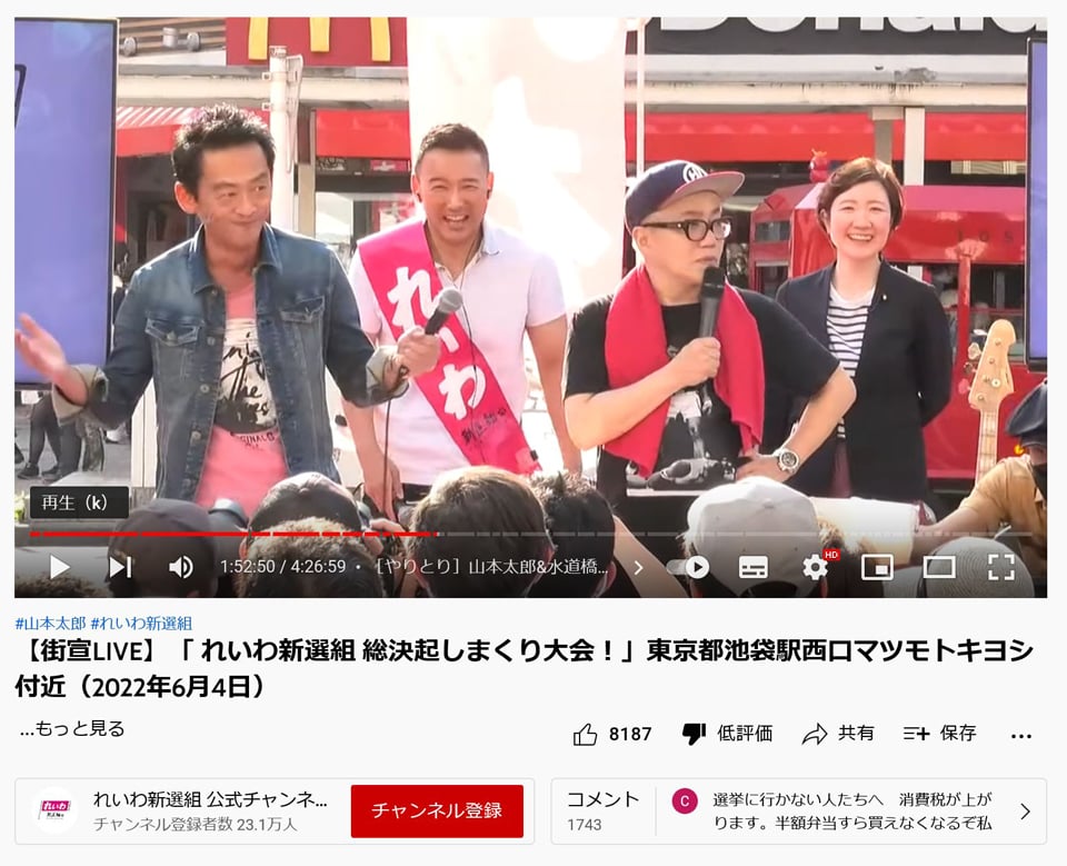 映画の仕事と小川や町山とYouTube共演したり、れいわの政策について勉強はしていたと言われてる