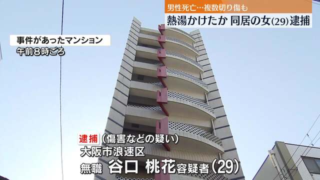 30日、大阪市のマンションの浴槽で切り傷ややけどを負った男性が見つかり、その後、死亡しました。警察は、29歳の女を傷害などの疑いで逮捕しました。