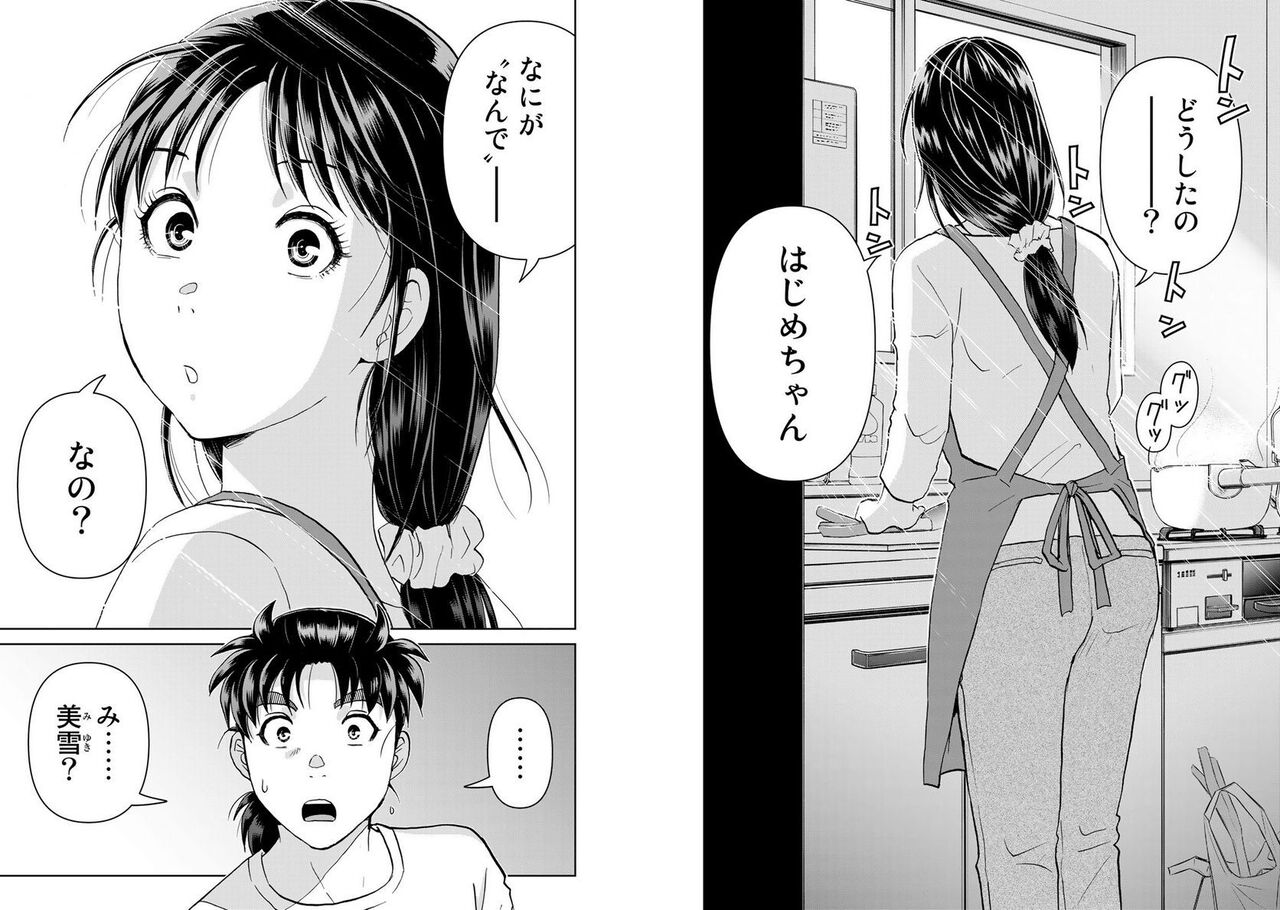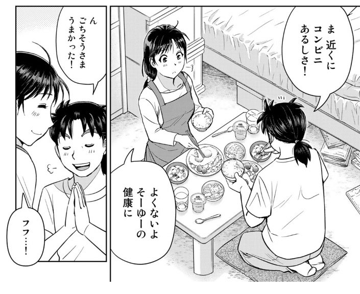見た目が変わらず、金田一のマンションで食事を作って一緒に食べていた