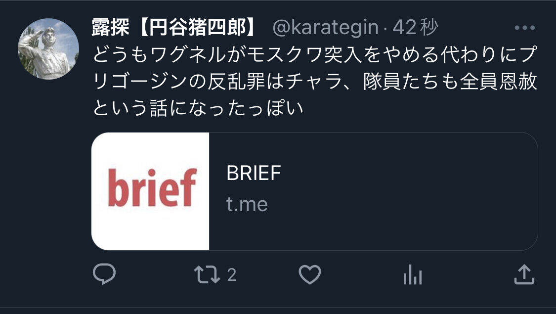 どんな条件で折り合ったか知らんけどプリゴジンも案外アホやったな