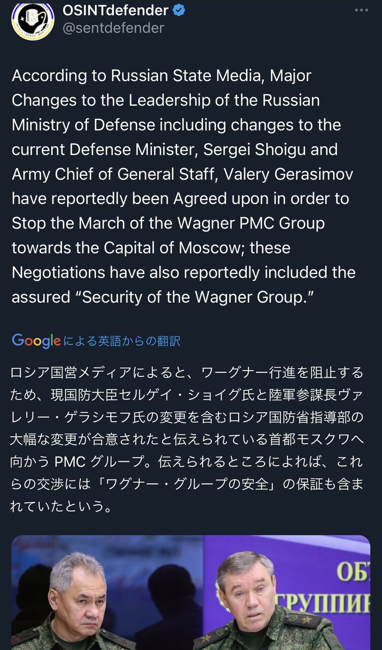 なんかワグネル内でもめてるって