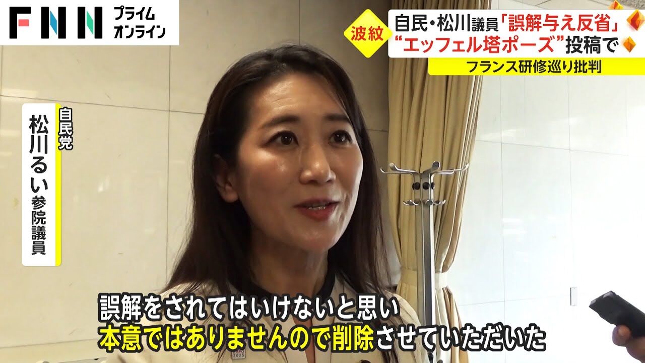 フランス研修の様子をSNSに投稿し、「ただの観光旅行だったのではないか」などと炎上している問題について、自民党・松川るい参院議員は、7月1日、党本部で「軽率だったと反省しています」と謝罪した。小渕優子組織運動本部長から注意を受けたとも明かした。
