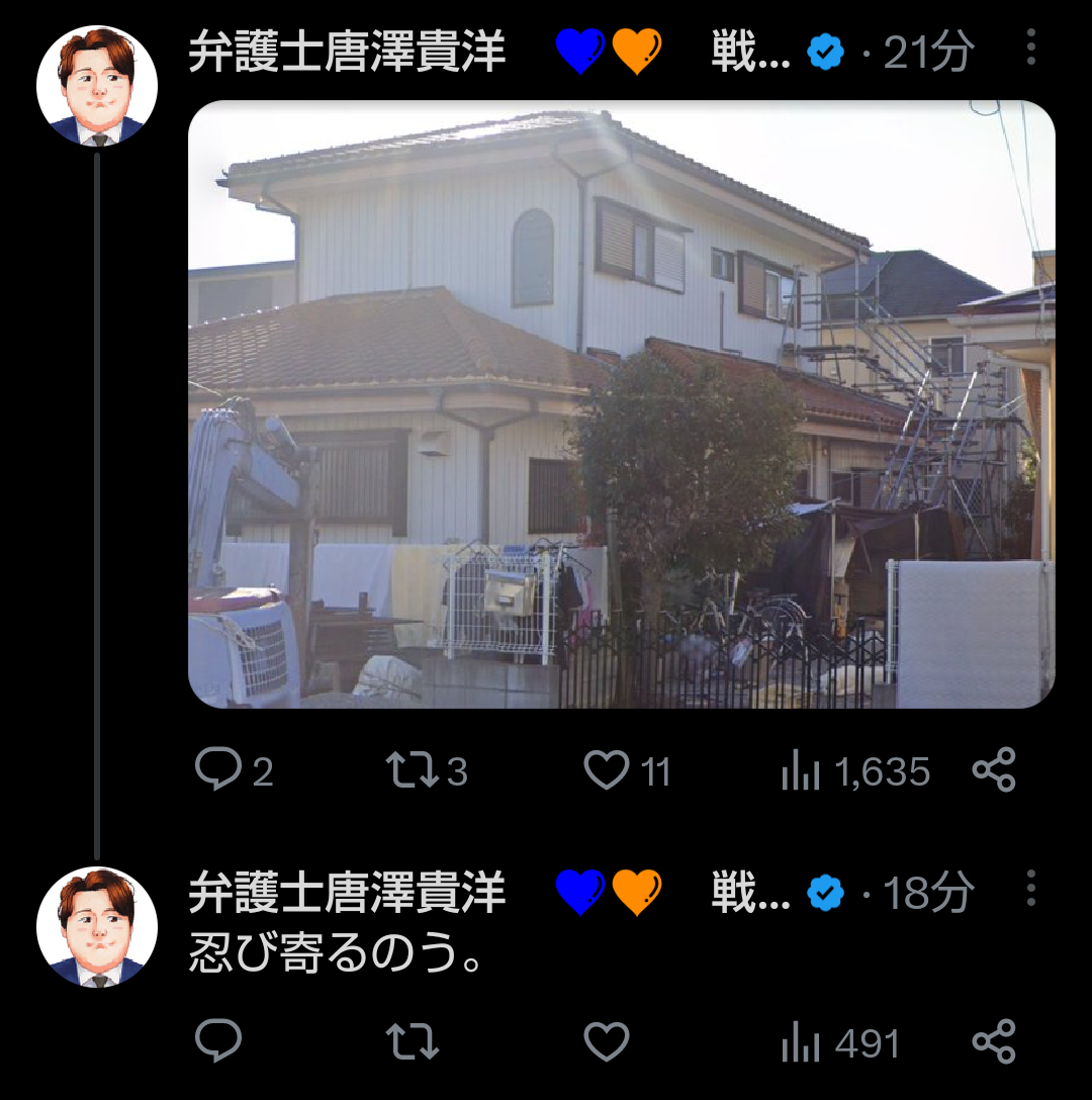 敵の家特定して写真撮りに行くのは弁護士の仕事やろ君ら知らんのか