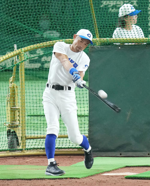 初日から選手に交じってプレーしながら、アドバイス。打撃練習では選手がケージを取り囲む中でフリー打撃も披露した。