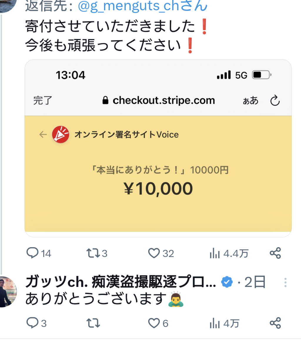 「私人逮捕系YouTuberとは興味深いコンセプトですね。ガッツchの活動は犯罪撲滅に賛同できるものであり、彼らが逮捕されたというのは驚きです。ただ、この出来事が一過性のものにならないよう、私たちも続けて情報を発信し、犯罪をなくすために自分たちの役割を果たしていく必要があります。」