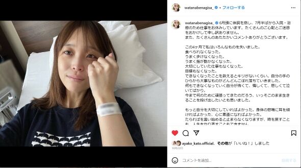 なお、病状などについては明かされておらず、渡邊アナの投稿でも現在に至るまで言及されていません。