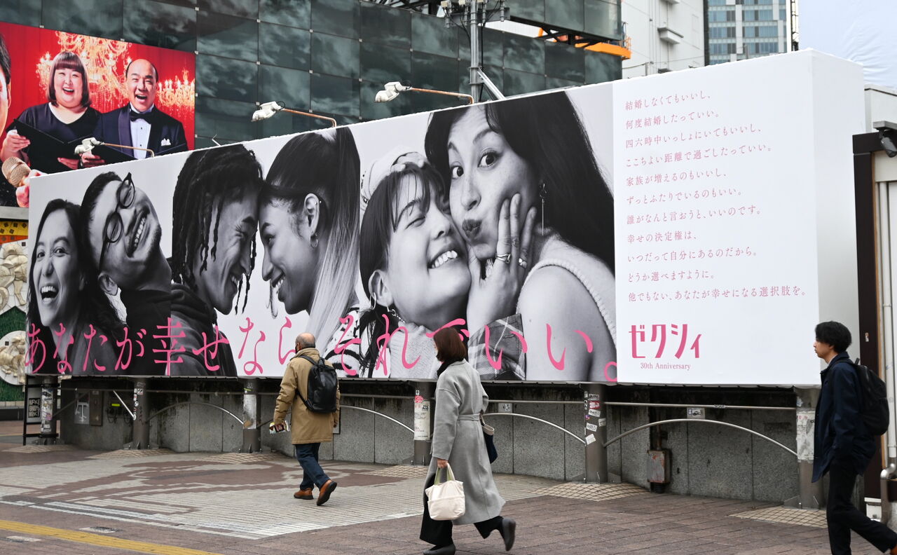 リクルートが運営する結婚情報サービス「ゼクシィ」は2023年12月1日、JR渋谷駅近くで同性カップルや事実婚のカップルを起用した広告の設置を始めた。