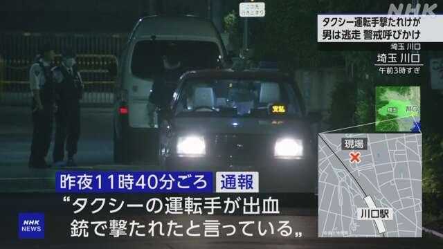 埼玉・川口でタクシー運転手が撃たれ腹から出血…逃走の男は拳銃のようなもの所持か