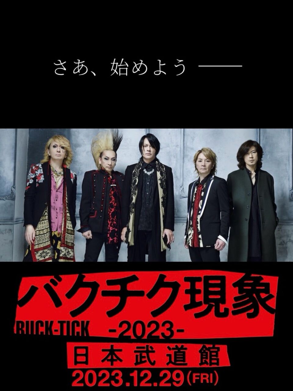@natalie_muBUCK-TICK、昨年末の武道館ワンマン「バクチク現象-2023-」をパッケージ化 natalie.mu/music/news/578… #BUCKTICK #バクチク現象 pic.twitter.com/PMsckSLz27