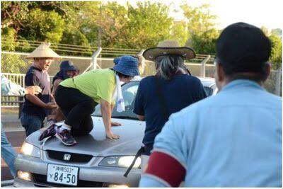 抗議していた女性をダンプのために押し返していたら(連中に)一緒に押し出された感じじゃね