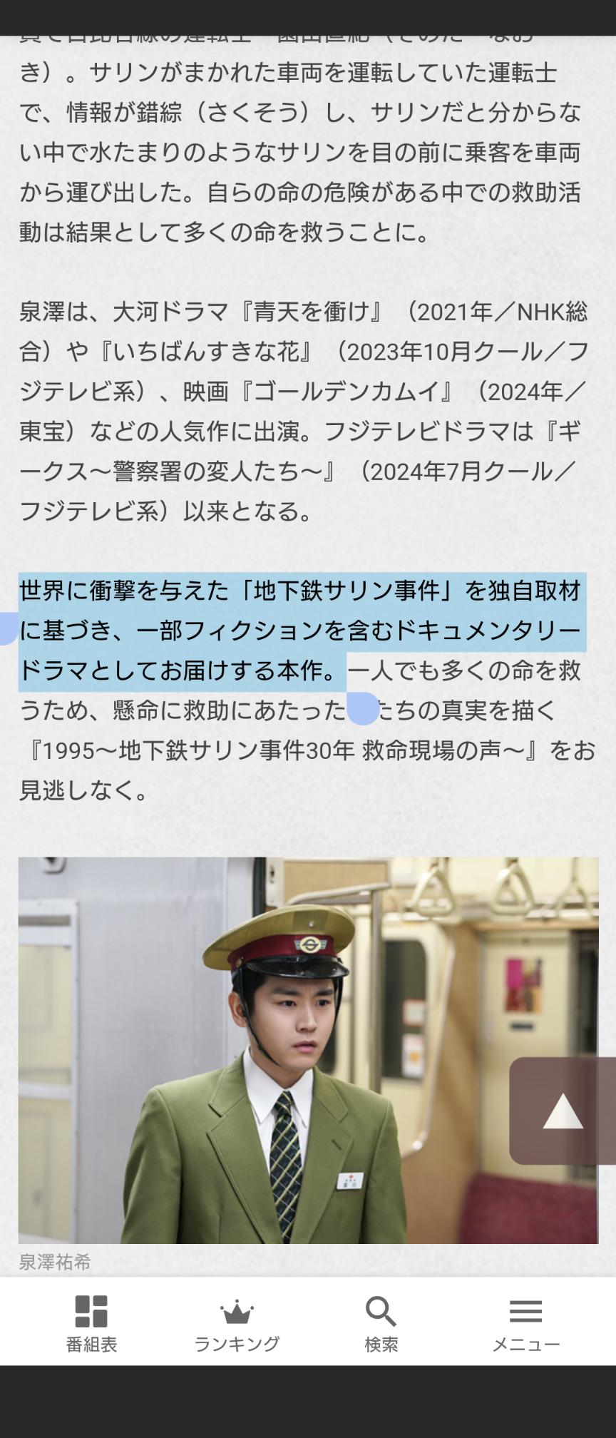 | 発生から30年の地下鉄サリン事件をフジテレビでドラマ化 津田健次郎、桜井日奈子、泉澤祐希が救命活動の医師ら熱演 - Yahoo!ニュース 発生から30年の地下鉄サリン事件をフジテレビでドラマ化 津田健次郎、桜井日奈子、泉澤祐希が救命活動の医師ら熱演 Yahoo!ニュース (出典:Yahoo!ニュース) |