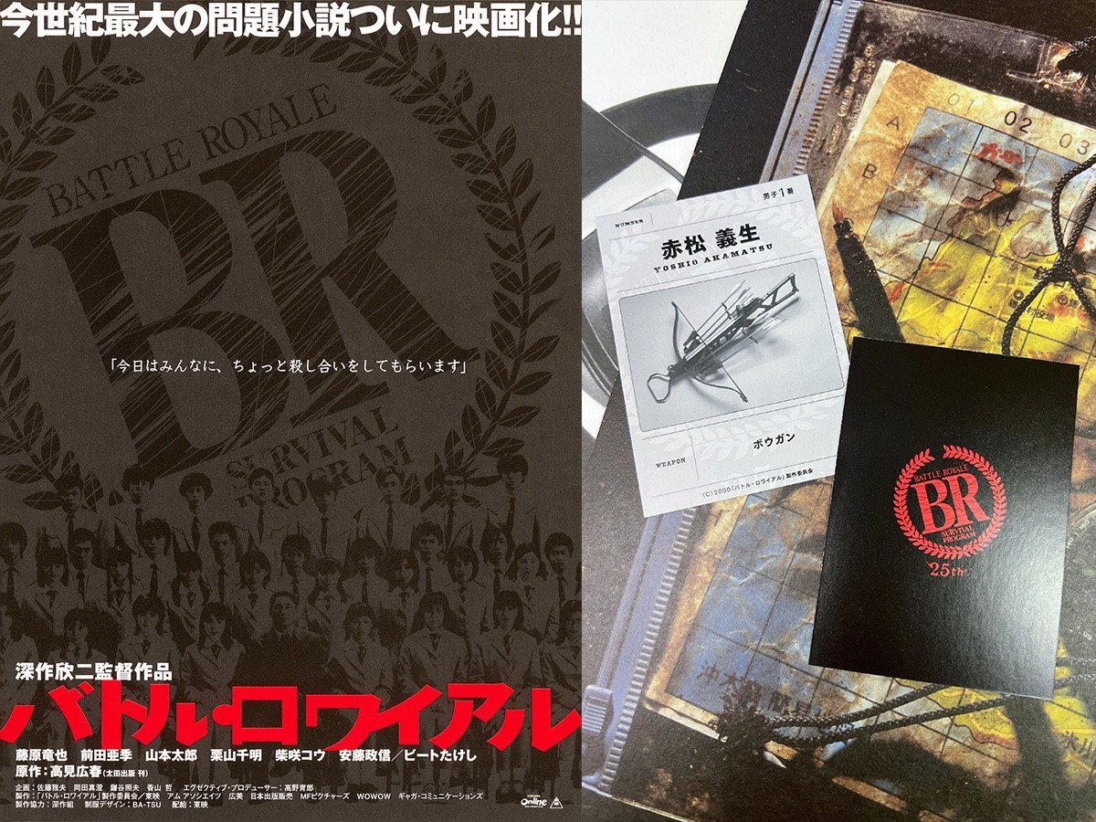 | 映画『バトル・ロワイアル』リバイバル上映、入場者に支給武器カード(42種ランダム)配布【劇場リストあり】 …演を見せる。 入場者プレゼントは、裏面に『バトル・ロワイアル』25周年ロゴ、表面に『バトル・ロワイアル』に参加することになった3年B組の生徒たちの名… (出典:) |