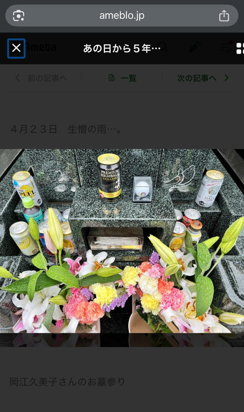 自身のブログを更新。岡江久美子さんの墓参りをしたことを報告した。