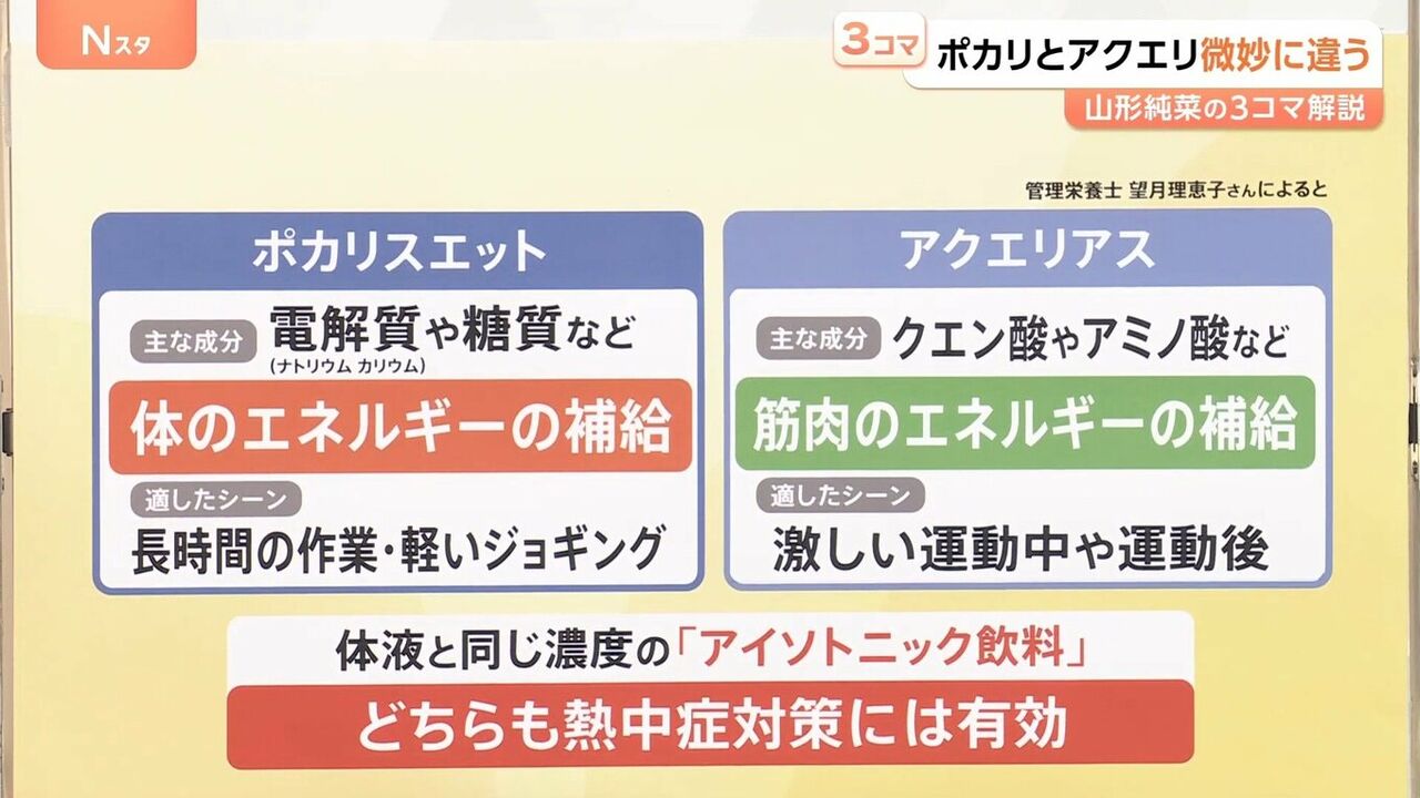 “ポカリ”と“アクエリ” 実は飲むべき時が違った! “何となく”で選んでいませんか?効果的な飲み分けを解説【Nスタ解説】