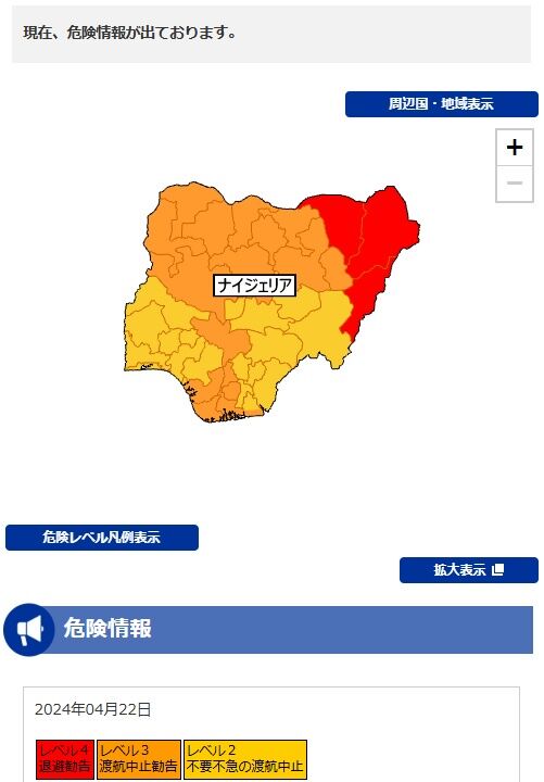 ナイジェリアの渡航危険レベル限界突破、外務省「危険レベル4至急退避して下さい」