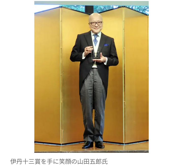 山田氏は「身に余る賞で、長生きはするものだと思っております。伊丹十三は学生時代からリアルタイムで活躍を見てきた人。若い頃はこういう大人になりたいと思ったんですね。まさにわれわれ世代にとって、学校で教わらないことを教えてくれるモノンクル、オシャレなおじさんだったわけです。いただけたのが本当にうれしいです」と喜びのスピーチ。伊丹作品では映画「タンポポ」が好きだという。