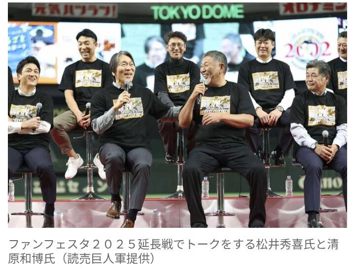 巨人は23日、東京ドームでファンフェスタ終了後にOBトークイベント「ジャイアンツ・ファンフェスタ“延長戦”~2002年優勝メンバー同窓会~」を開催した。