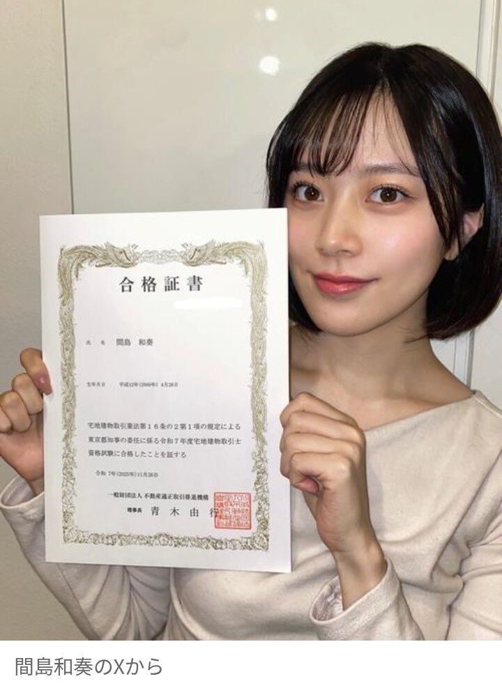 元ラストアイドルの間島和奏が宅建士に合格したことを報告。密かに勉強し、祝福の声が寄せられている。