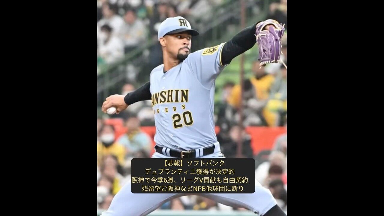 ソフトバンクが阪神のジョン・デュプランティエ投手を獲得し、日本でのプレー続行を希望。阪神は残留交渉も断り獲得決定。