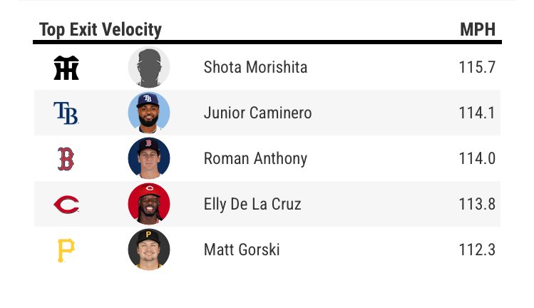 森下が全てのメジャーリーガーを押さえて打球速度トップ
