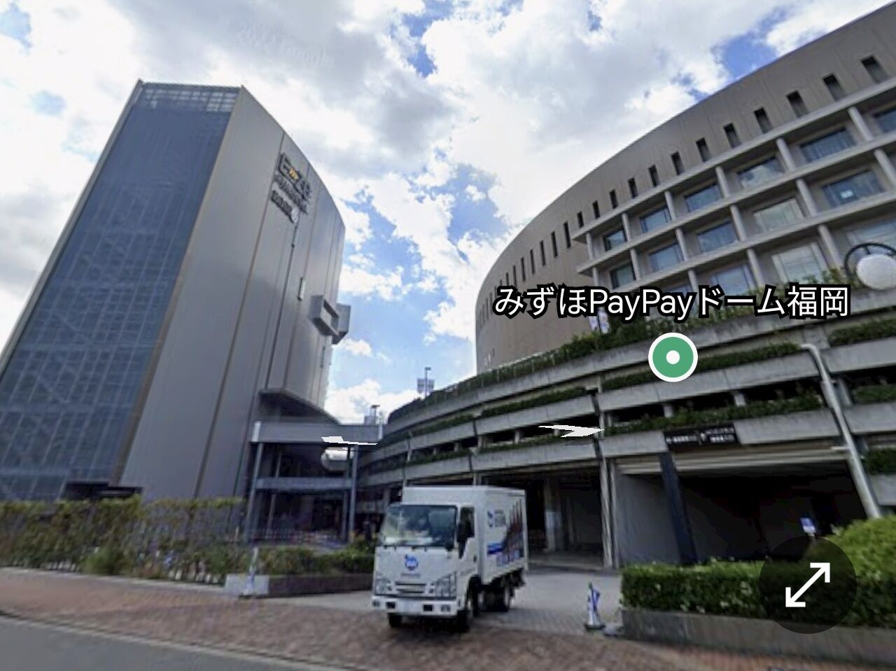 位置関係はこんな感じで左側がHKT劇場のある施設で出待ちするにしてもペイペイドーム側で待つ意味があるのかは謎