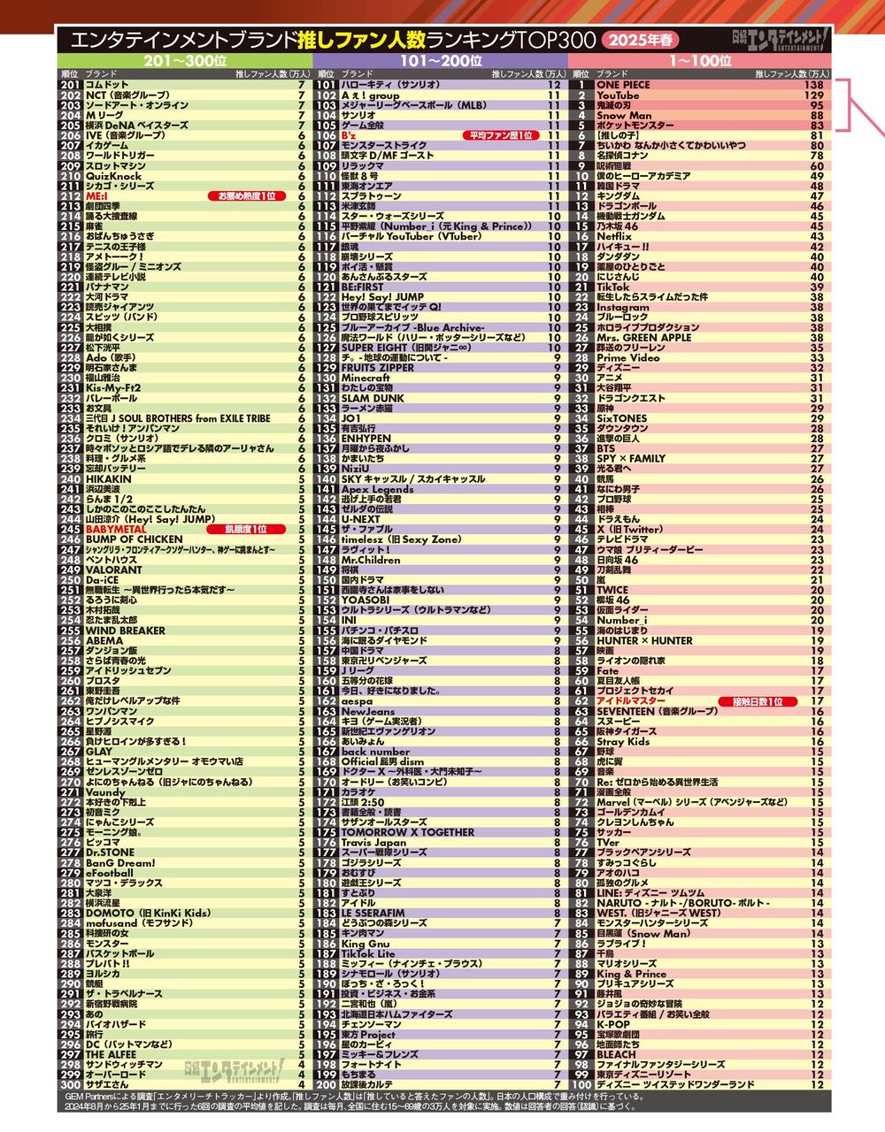 最新のアイドルグループ人気(ファン数)ランキング