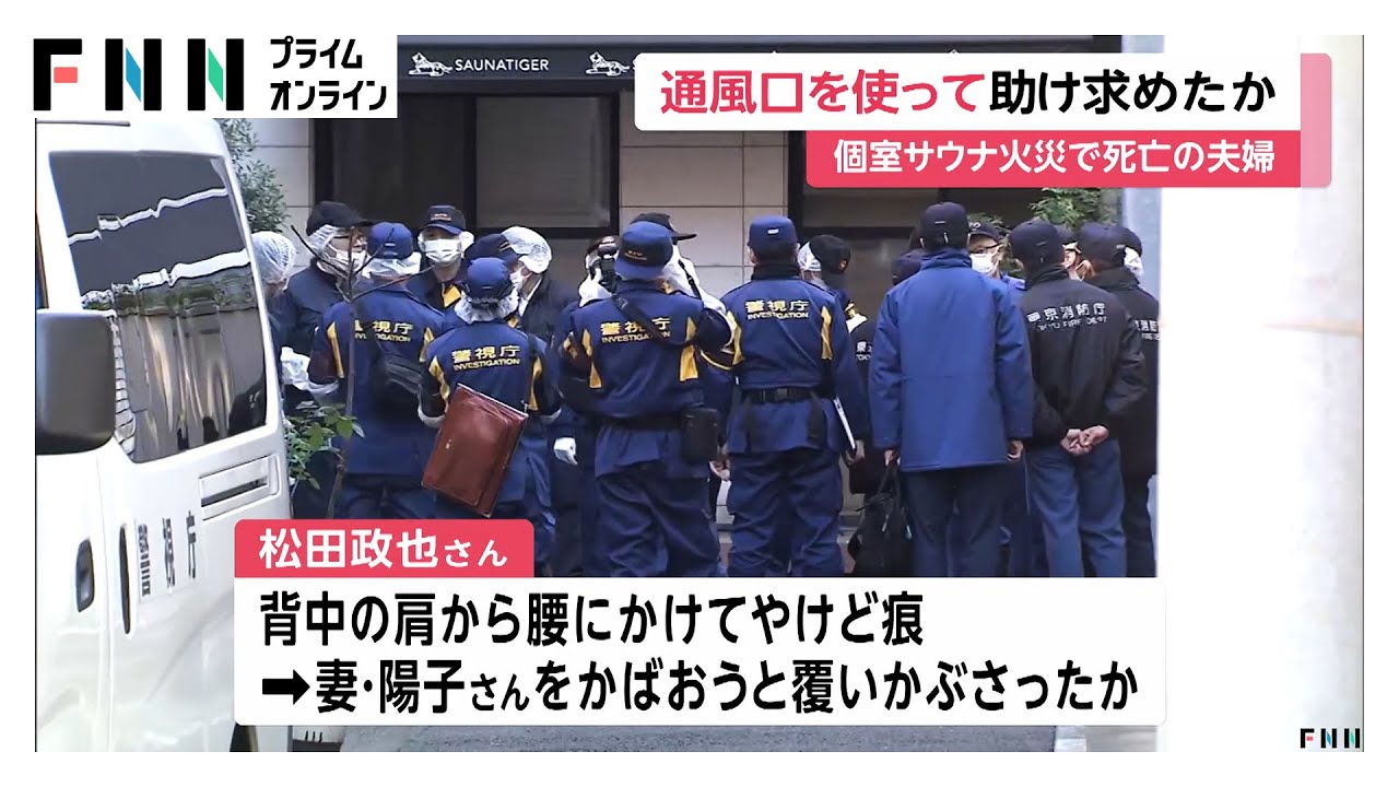東京・赤坂の個室サウナで起きた火事で死亡した30代の夫婦が、サウナ室内の通風口を使って助けを求めていた可能性があることが分かりました。
