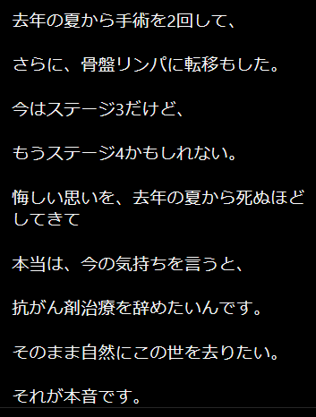 ステージ3て余命とかのレベルじゃ全然ないからね。完治を目指せるレベル。