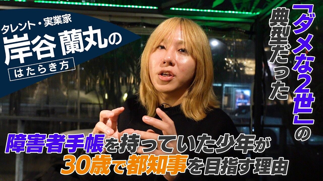 岸谷蘭丸氏が将来の夢である東京都知事を目指す理由やメディア出演について語る。知名度の大切さを強調し、批判に対する苦悩も告白。