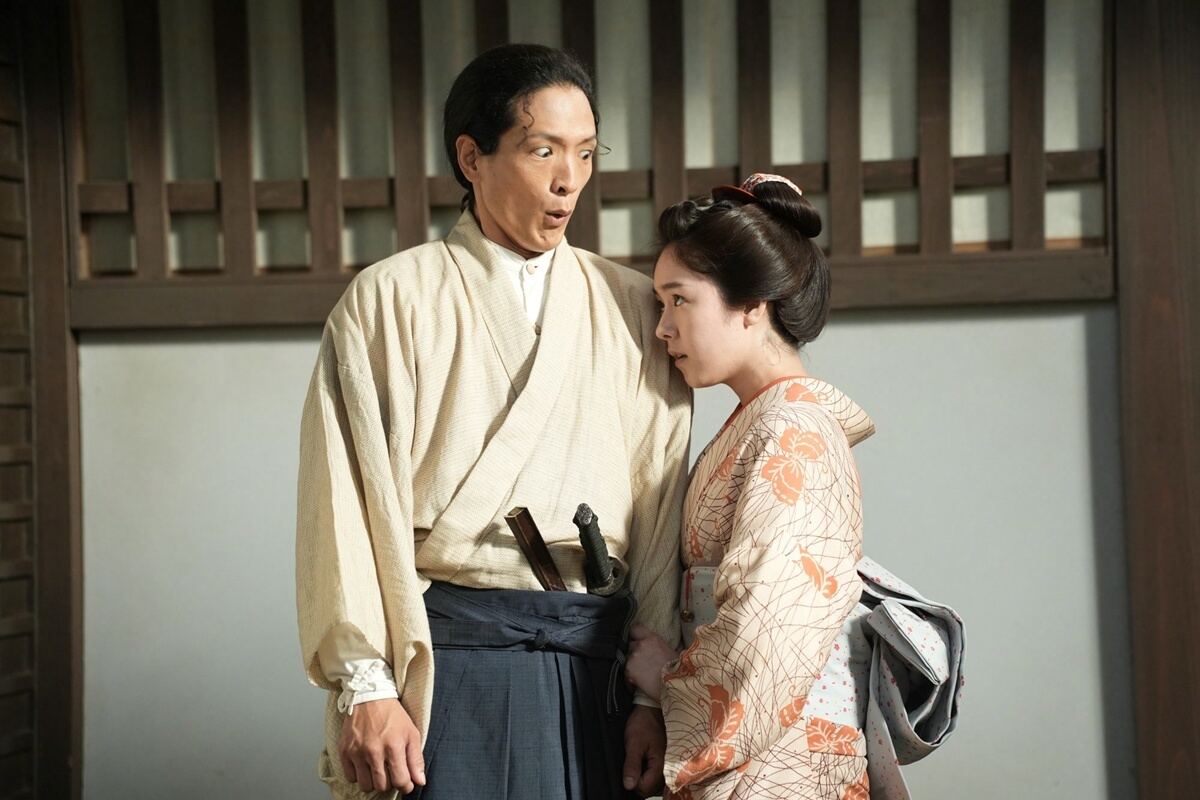 唐田が演じるお久は、浮浪雲の息子・新之助(川原瑛都)が通う青田塾の教師・青田師範(渡部豪太)が一目ぼれする茶屋の娘。字が書けないお久に、青田は字を教える口実で近づいていく。