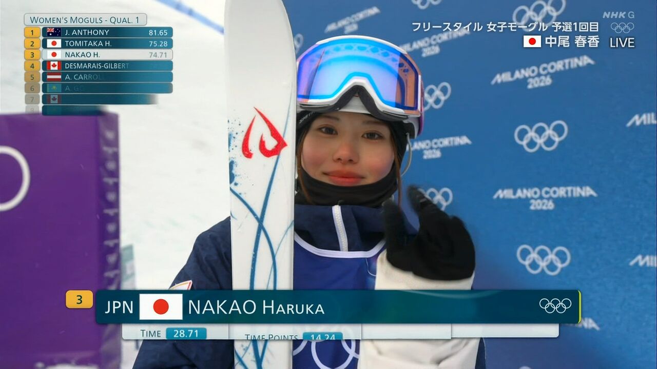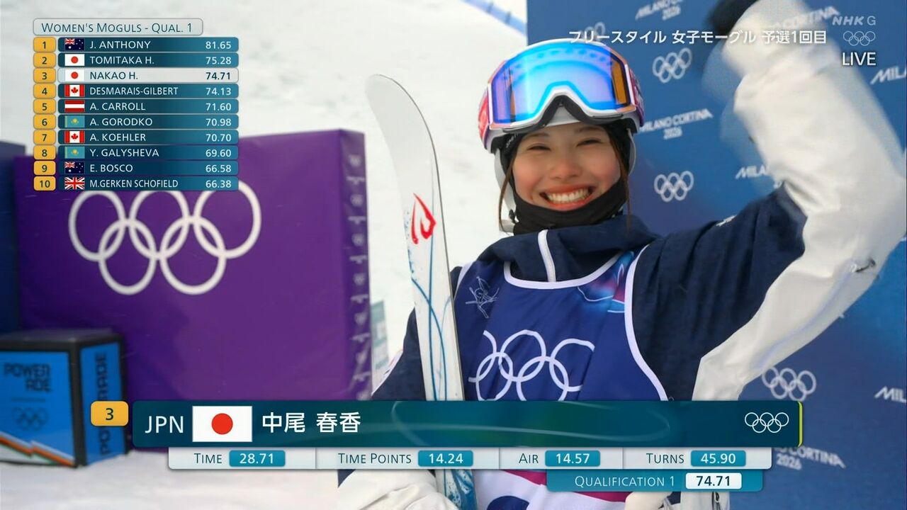 ミラノ・コルティナ五輪のフリースタイルスキー女子モーグル予選が10日に行われ、中尾春香(佐竹食品)が7位で決勝進出を決めた。