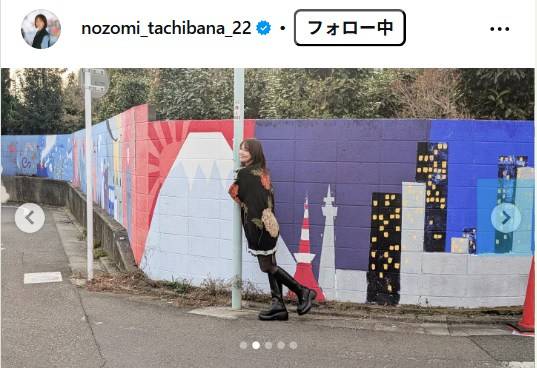 「今日はポカポカ暖かくて、最高のお散歩日和でした」とつづり、ニットのミニワンピースに黒ストッキング&ブーツを合わせたコーデ姿をインスタグラムにアップしたのは女優の立花のぞみ(35)=熊本県出身。