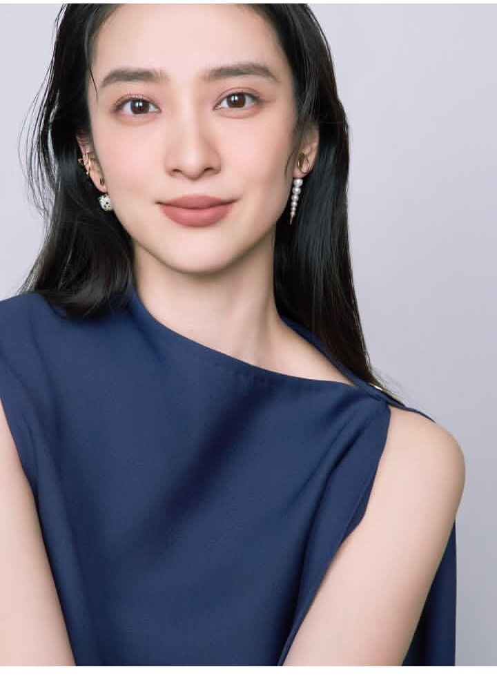 1枚目は、紺色のノースリーブを着て髪は下ろしたスタイル。武井さんは正面を向いてほほ笑んでいます。